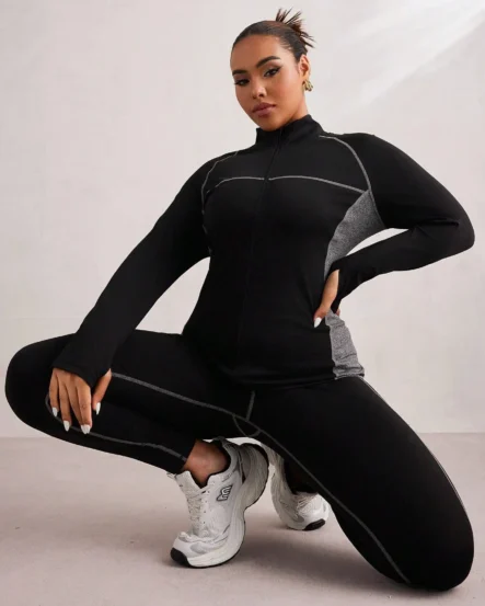Plus-Size Color Block Activewear Set