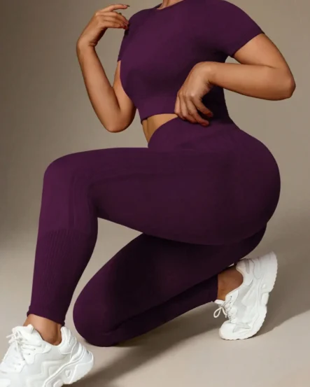 Plus-Size Ribbed Crop Top & High-Waist Leggings Set