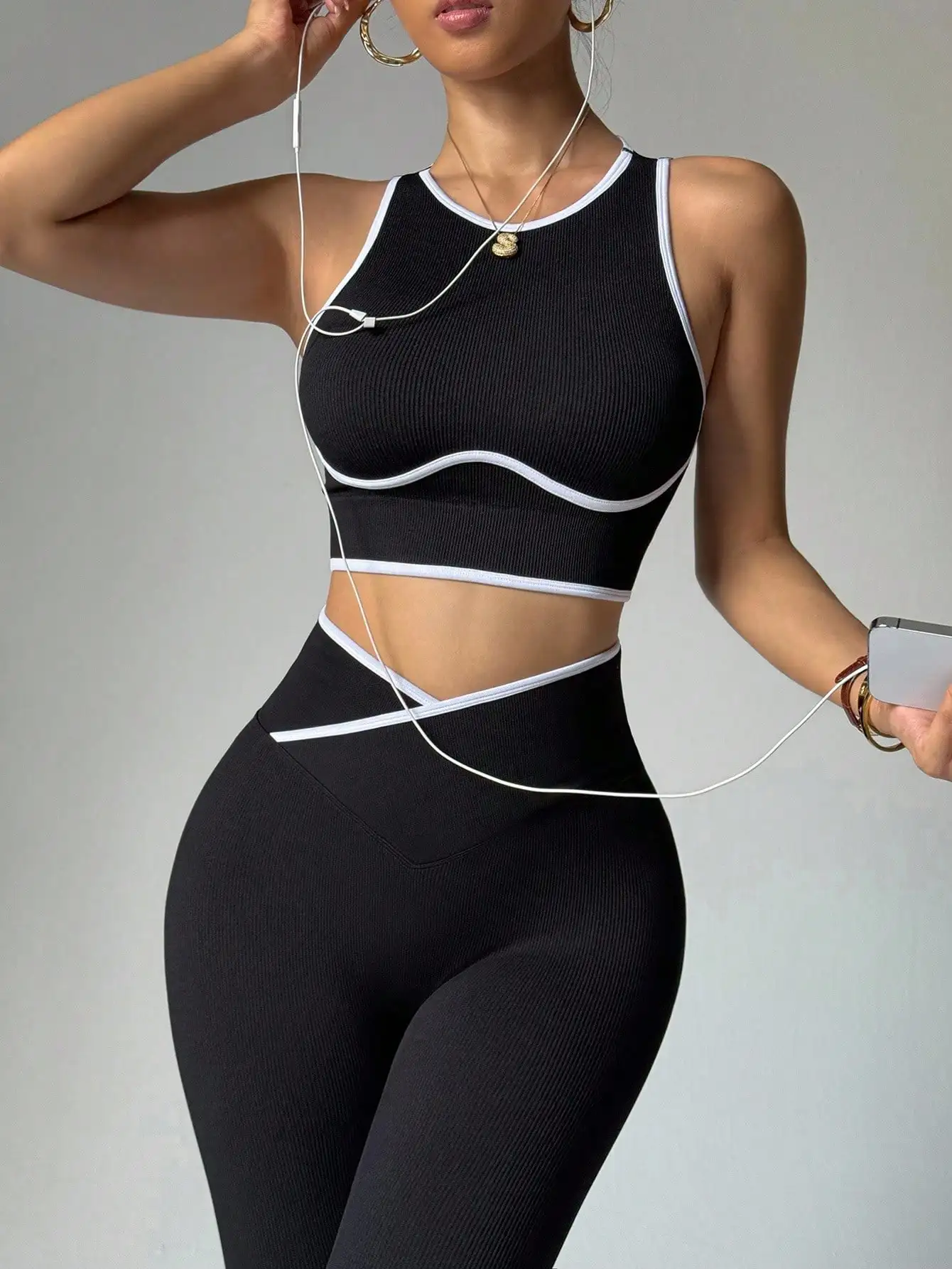 Plus-Size Ribbed Crop Top & High-Waist Leggings Set