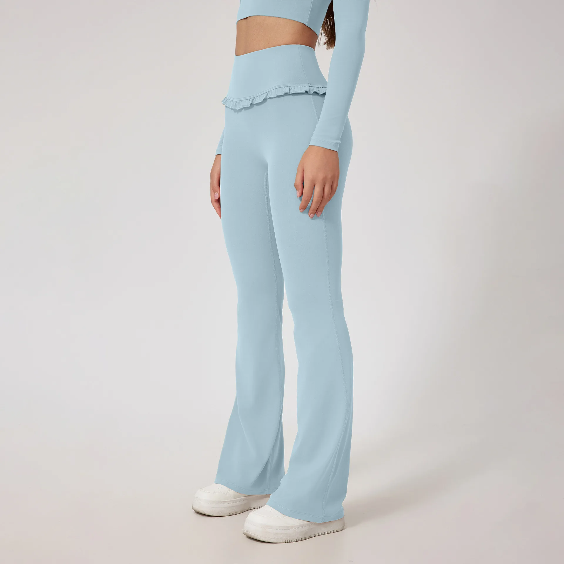 Ruffled Top High-Waist Flared Workout Pants