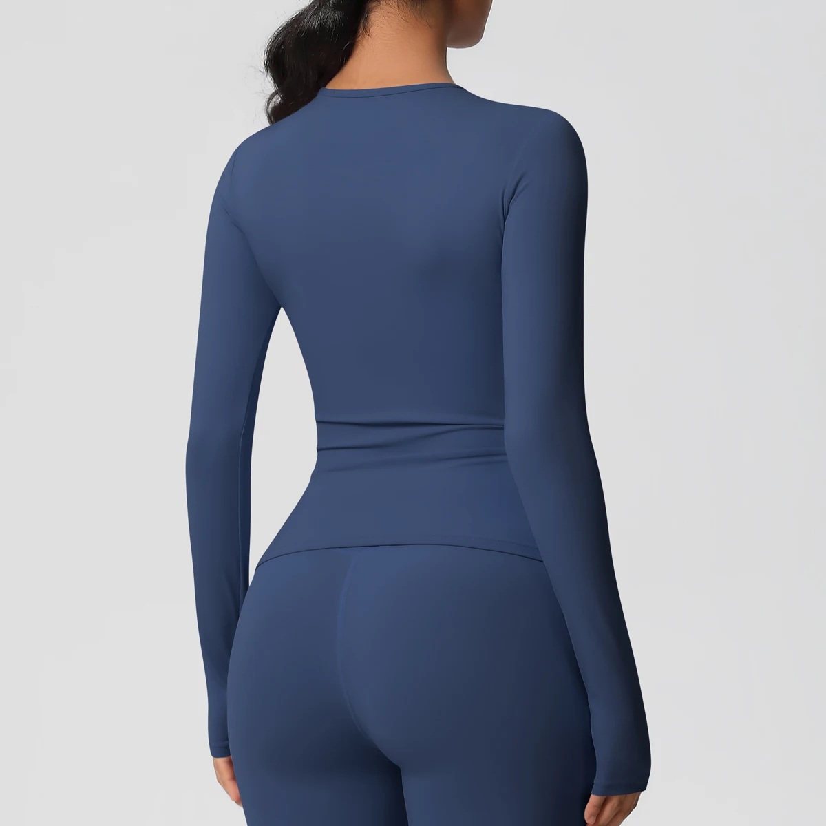 Product DetailsStyle: Long-sleeve performance workout top Fabric: Breathable, moisture-wicking dry-fit material Fit: Stretchy, athletic fit Feel: Lightweight, smooth, and flexible Use: Indoor and outdoor fitness activities |