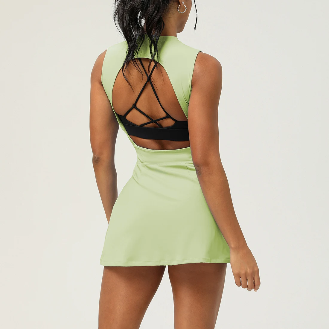 Women Sleevelesss Fitness Running Comfortable Athletic Dress Drawstring Waist Short Length Outdoor Sports Tennis Dress
